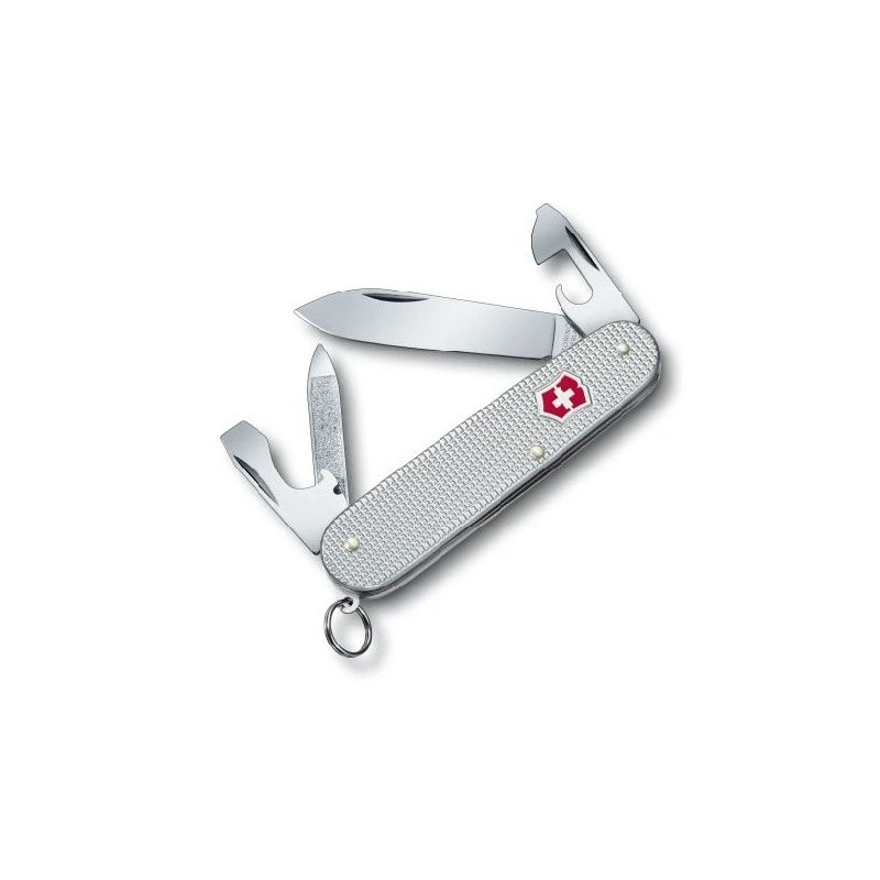 Avec son joli manche gris argent quadrillé de 84mm de longueur, le Victorinox Cadet Alox est un couteau suisse de poche qui n’a pas fini de vous surprendre. Particulièrement résistant aux chocs, le cadet alox se fera très discret dans une poche ou au bout d’un porte-clés tant il est léger et extrêmement fin : il ne pèse que 46 grammes pour 8mm d’ épaisseur et vous accompagnera durant toutes vos aventures sans occasionner la moindre gêne. Riche en fonctionnalités, ce petit couteau suisse vous fera bénéficier de plusieurs outils bien pratiques à utiliser au quotidien, comme par exemple des tournevis, lime à ongles, ouvre-bouteille & boîtes … Au total, il cumule 4 outils pour 9 fonctionnalités, un palmarès impressionnant !
