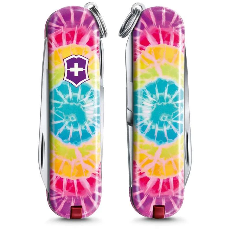 Ce Classic Victorinox Tie Dye 2021 est colorĂ© par des motifs fun aux couleurs vives, il ne manque pas d’ĂŞtre reprĂ©sentatif des seventies et sa culture hippie. Une dĂ©coration qui ne passera pas inaperçue : après tout il faut profiter au maximum de la vie !