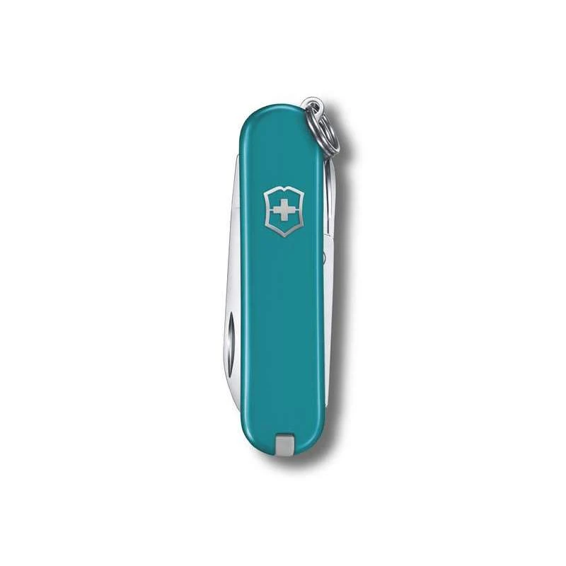 Chez Victorinox, le Classic SD est une institution, comprenez que c’est un modèle phare, apprĂ©ciĂ© tant pour ses performances que son gabarit compact. La nouvelle collection Classic Colors a pour objectif de moderniser, redonner un coup de jeune Ă ce couteau suisse emblĂ©matique, connu de tous et toutes. D’ailleurs, ce modèle Mountain Lake 0.6223.23G et son coloris bleu canard ne sera pas sans vous rappeler vos plus belles excursions en montagne, oĂą vous avez peut ĂŞtre croisĂ© un lac. Mesurant 58mm de long avec anneau porte-clĂ©s pour une facilitĂ© de port Ă toute Ă©preuve, la paire de cĂ´tes en ABS/Cellidor se glisse facilement dans une poche, elle comprend bien sĂ»r le logo Victorinox en guise de dĂ©coration. Toujours aussi polyvalent, ce canif Classic SD Victorinox Mountain Lake intègre toujours les 7 fonctions qui ont forgĂ© son succès depuis plus d’un siècle. Pour connaĂ®tre la liste complète des outils, rendez-vous en bas de page. Gardez bien Ă l’esprit que la sĂ©rie Collection Colors Victorinox est relativement riche, d’autres coloris tendances sont disponibles pour votre Classic SD favori !