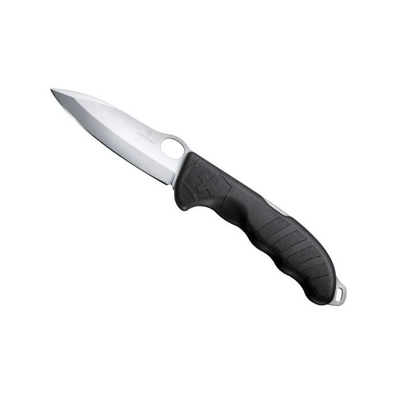 Les chasseurs aguerris connaissent tous très bien le Victorinox Hunter Pro, car c’est un couteau suisse qui leurs est pleinement destinĂ©. Ce modèle 0.9411.M3 possède un manche noir très ergonomique, avec soft touch pour une prise en main agrĂ©able mĂŞme par temps froid et humide. Qu’il pleuve ou qu’il neige, le couteau suisse Hunter Pro M noir Victorinox vous donnera toujours entière satisfaction. DĂ©corĂ© par la croix Victorinox, le manche noir possède en bout une petite fonctionnalitĂ© supplĂ©mentaire en apparence anodine, Ă savoir un point d’attache, ou encore un trou de lanière. Ă€ titre d’exemple, cela permet d’y passer de la corde ou de la ficelle pour accrocher/transporter le couteau suisse Hunter Pro avec toujours plus de facilitĂ©. Ce qui est très pratique pour la chasse !