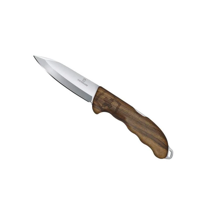 Les chasseurs aguerris préfèrent souvent les couteaux simples, sans fonctionnalité superflue qui ne serait que très rarement utilisée, pour ne pas dire jamais. C’est exactement pour cette raison qu’ils utilisent le couteau suisse Hunter Pro Wood 0.9411.63. Un modèle, qui comme vous l’aurez compris, intègre l’incontournable manche en bois noyer de forme ergonomique : une apparence très nature qui plaît beaucoup aux passionnés de chasse. Un manche qui de plus, est sublimé par le motif croix caractéristique de la marque suisse Victorinox. Un logo qui s’intègre parfaitement dans le manche en bois noyer !