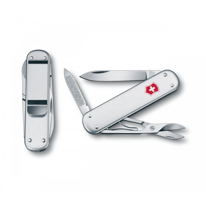 Doté d’un élégant manche alox décoré de la croix blanche et rouge Victorinox, le couteau suisse Money Clip fait également office de portefeuille en intégrant au dos un porte billets traduit en anglais par « Money Clip », d’où le nom de ce modèle. En plus de tenir fermement votre argent, le couteau suisse Money Clip dispose de 4 autres fonctionnalités également très utiles : une lime à ongles, un cure-ongles, une paire de ciseaux sans oublier l’incontournable lame en acier inoxydable.