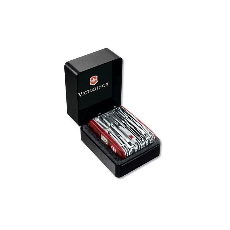 Livré dans son écrin, le Victorinox XAVT fera un cadeau idéal au moment des fêtes, notamment à l’occasion de Noël, la fête des Pères ou encore les anniversaires. Magnifique couteau suisse rouge marqué de la croix Victorinox, le XAVT s’offrira parfaitement à un collectionneur averti. Mesurant 91mm de longueur, le manche de ce couteau est très compact si bien qu’il n’aura aucun mal à se ranger dans une poche, dans un sac ou derrière une vitrine de collection. Il sera également possible de l’accrocher à un trousseau de clefs grâce à l’anneau en inox. Le Swisschamp XAVT est un modèle tout terrain : il facilite la vie des aventuriers, des bricoleurs et sera séduire tous les collectionneurs ayant la passion du couteau suisse Victorinox.