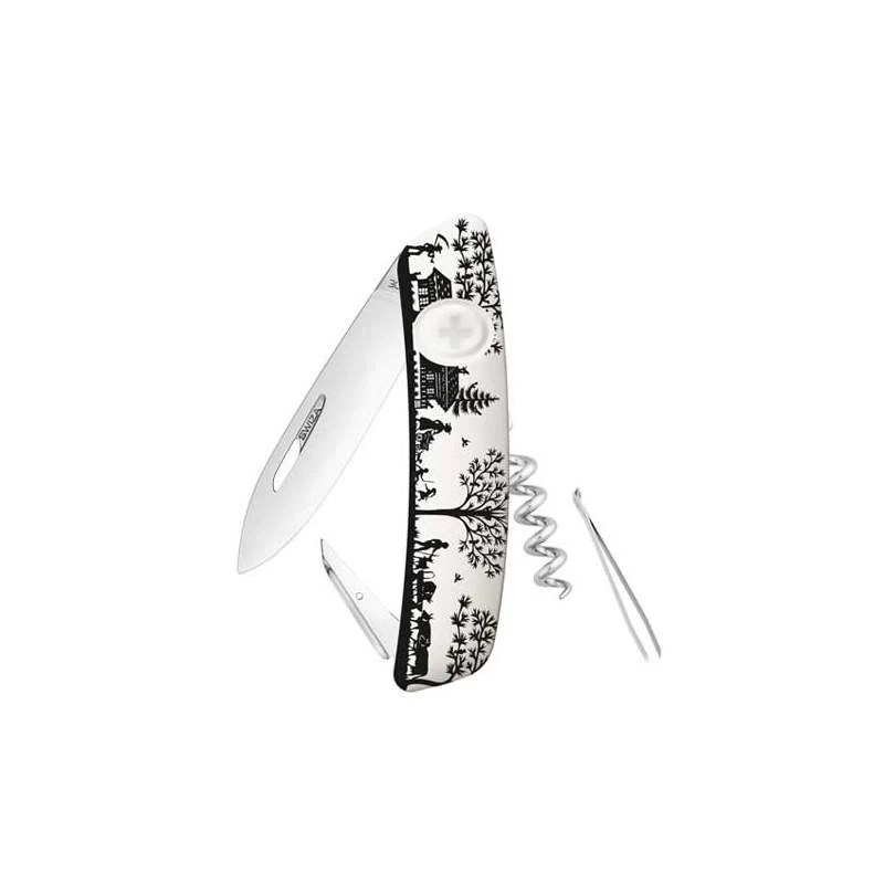 Un couteau suisse Swiza blanc qui met en avant le pays de Heidi