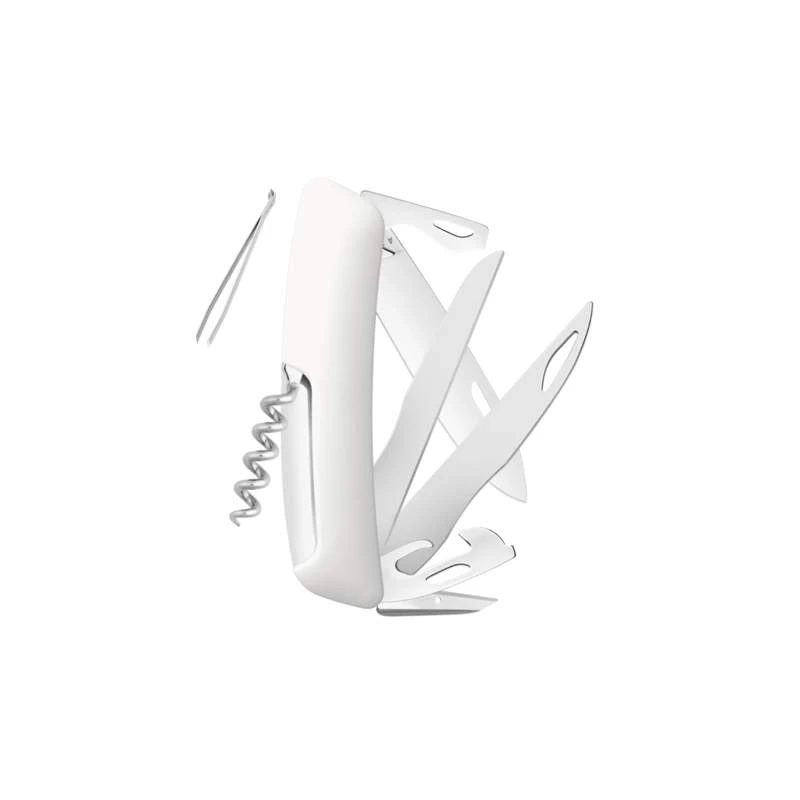 Si le couteau suisse Swiza D07 Édition Hiver 2018 arbore un look plus original qu’un modèle D07 dit « classique« , il n’en reste pas moins parfaitement égal en terme d’outils. C’est pour cela que ce modèle possède 10 fonctionnalités différentes dont des ciseaux de grande taille pour les travaux nécessitant la plus grande précision. Ce couteau suisse Swiza est également parfait pour le bricolage grâce à ses tournevis et son plieur de fil. Il fera également parfaitement l’affaire pour la survie grâce à son décapsuleur, son tire-bouchons ainsi que sa grande lame avec blocage de sécurité (bouton situé sur le manche blanc). Une lame que vous pouvez d’ailleurs personnaliser sur les deux faces (voir bouton ajouter une gravure). À la pointe de l’ergonomie, le Swiza D07 Winter 2018 offre à l’utilisateur gaucher ou droitier une facilité d’utilisation. De plus, la paire de côtes blanche est douche au toucher et résistante aux rayures. Laissez-vous séduire par la magie de l’hiver et ce couteau suisse extraordinaire !