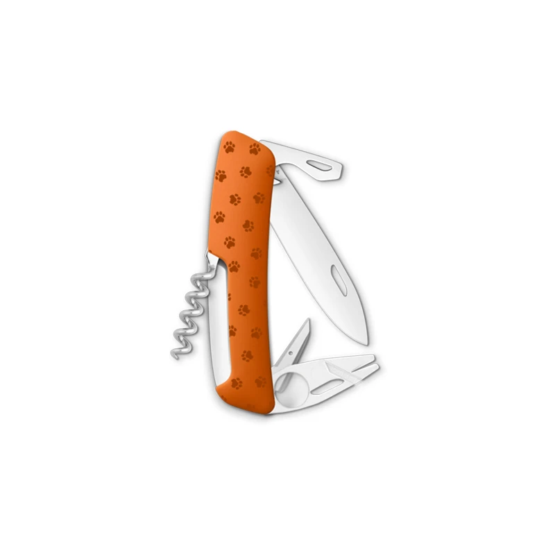 Facile à transporter de par sa longueur de 95mm, ce couteau suisse Swiza Tick Tool TT03 orange, motif lion, est doté d’un total de 11 fonctionnalités. Nous avions déjà évoqué les outils lame et tire-bouchons dans le premier paragraphe, mais il y a aussi le décapsuleur, le tournevis, et surtout le tire-tique et sa loupe de contrôle. Ces deux derniers étant les outils phares du modèle Tick Tool TT03 de chez Swiza, parfaits pour les baroudeurs, aventuriers, sportifs ou propriétaires d’animaux. Précision importante : la lame dispose d’un système de blocage de sécurité qui est en réalité le bouton croix situé au-dessus du motif lion sur la poignée orangée. Pour connaître toutes les fonctionnalités, rendez-vous en bas de page pour consulter le schéma explicatif du Tick Tool TT03. Un couteau suisse Swiza qui met le roi de la savane à l’honneur !