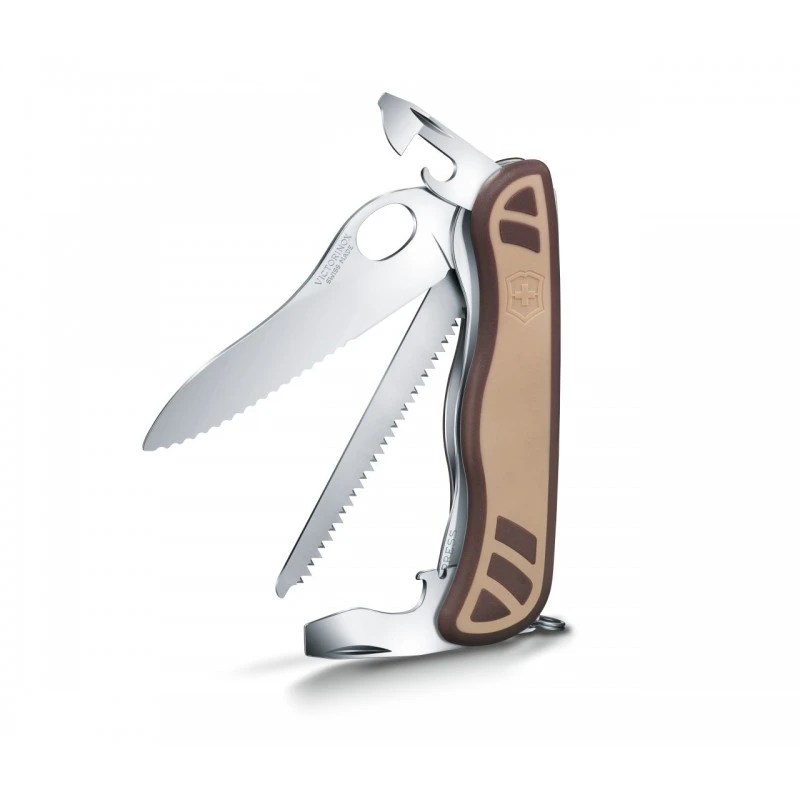 Partez à l’aventure en toute sérénité accompagné de votre Trailmaster Grip Desert 2C, un couteau suisse Victorinox doté de 10 fonctions dont une grande lame bloquante garantissant une sécurité totale en utilisation ou encore une scie à bois. Mais si l’on aime ce Victorinox Trailmaster Grip, c’est surtout pour son manche de 111mm décoré de mélanges de marrons dans des tons foncés et clairs, de quoi conférer un look très militaire à ce couteau suisse bloquant. Pour dire, il se camouflerait à merveille sur le sable du désert. Pour réussir toutes vos missions en extérieur, vous disposez d’un allié de taille : le Trailmaster Grip Desert 2C ! De plus, ce couteau vous permettra d’être réactif au moindre danger : la lame est dotée d’un trou arrondi permettant de l’ouvrir rapidement d’une seule main.